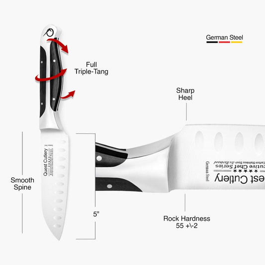 Quest Utility Santoku Knife, 5" Dark Pakkawood