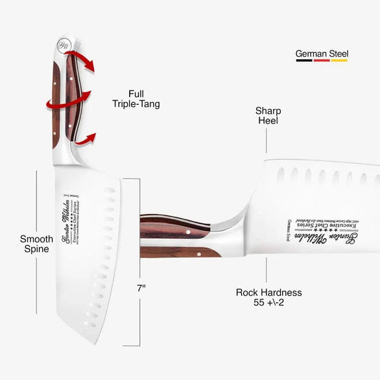 Refurbished Asian Cleaver, 7.5" Brown Pakkawood