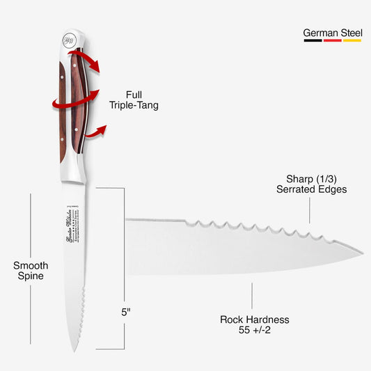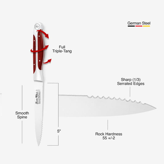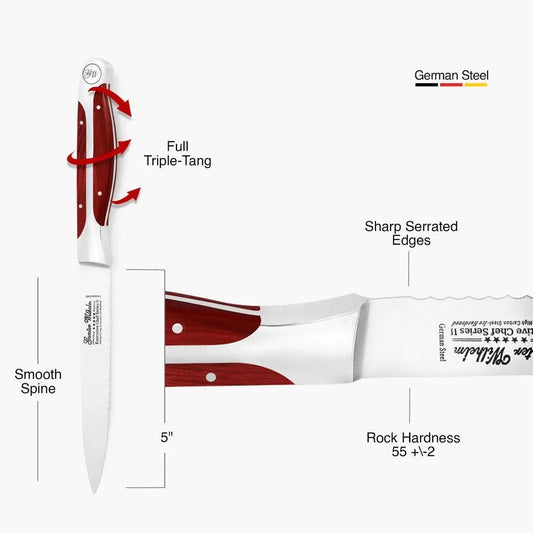 12-Piece Japanese Steel Half-Serrated Jumbo Steak Knife Set – 4.5" Brown Pakkawood Handle