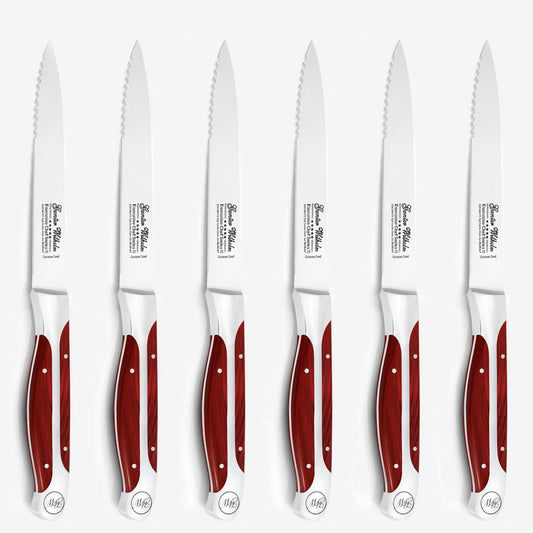 Refurbished Partially Serrated Steak Knives Set of 6 – 5" Brown Pakkawood