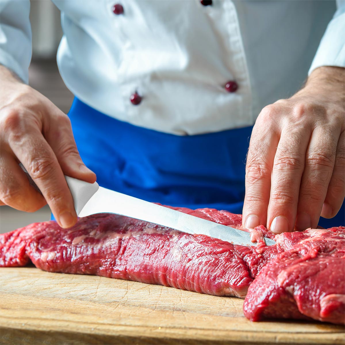 Clean & Easy Cutting Tool: This boning tool with its slightly curved, long blade will help you debone just about anything with ease. You can even use this knife to separate the skin from a fish fillet. The blade on this knife is thinner and more flexible than traditional knives, making it easier to maneuver.